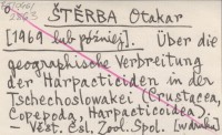 ŠTĚRBA Otakar 1969 Rozšíření plazivek (Crustacea, Copepoda, Harpacticoidea) w ČSSR s ohledem na územní třídění republiky.