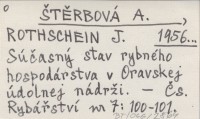 ŠTĚRBOVÁ A. ROTHSCHEIN, J. ; 1956... Súčasný stav rybného hospodárstva v Oravskej údolnej nádrži.