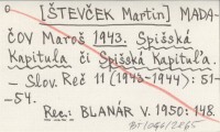 MADAČOV Maroš [ŠTEVČEK Martin] 1943 Spišská Kapitula či Spišská Kapituľa.
