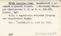 ŠTIKA Jaroslav 1960 Salašnictví v považské a kysucké oblasti.