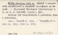 ŠTIKA Jaroslav 1961 Salašnictví na moravském Valašsku ve světle literárních pramenů do poloviny 19. století.