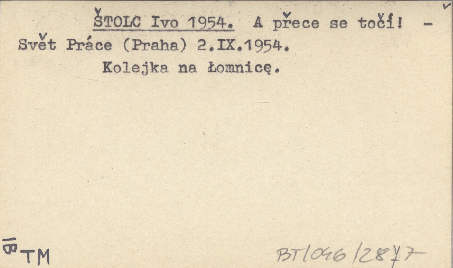 Svět Práce (Praha) , 2 IX 1954. Kolejka na Łomnicę.