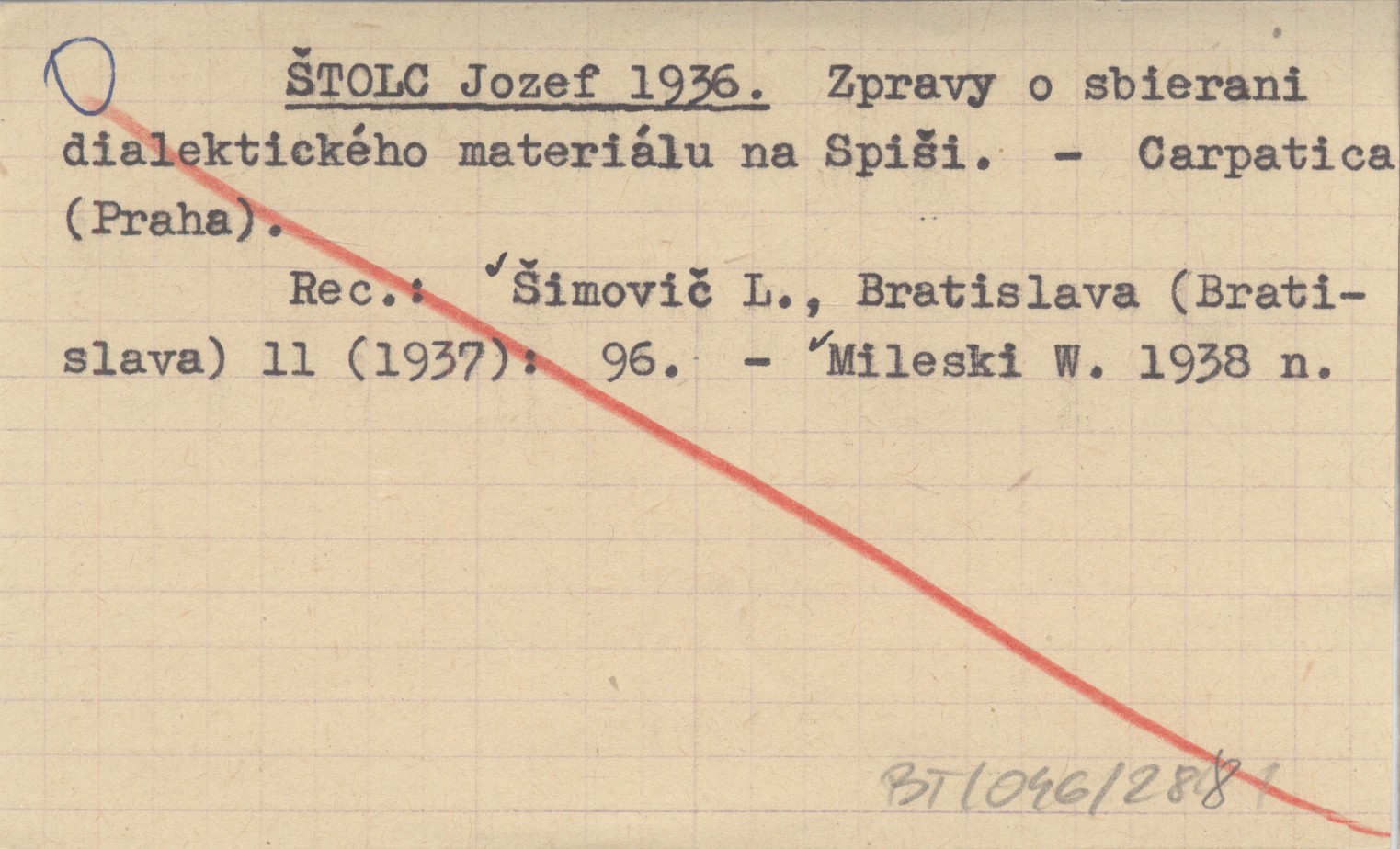 Carpatica (Praha) , REC: ŠIMOVIČ L., Bratislava (Bratislava) 11 (1937): 96 ; MILESKI W. 1938 n ;