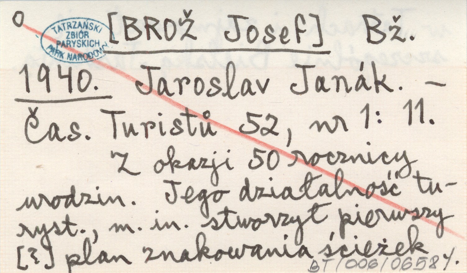 Čas. Turistů, 52, nr 1: 11. Z okazji 50 rocznicy urodzin. Jego działalność turyst., m. in. stworzył pierwszy [?] plan znakowania ścieżek w Tatrach i zajmował się szczególnie Bielską Jaskinią.