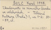 ŠULC Karel 1948 Zkušenosti ze zimního bivaku ve velehorách.