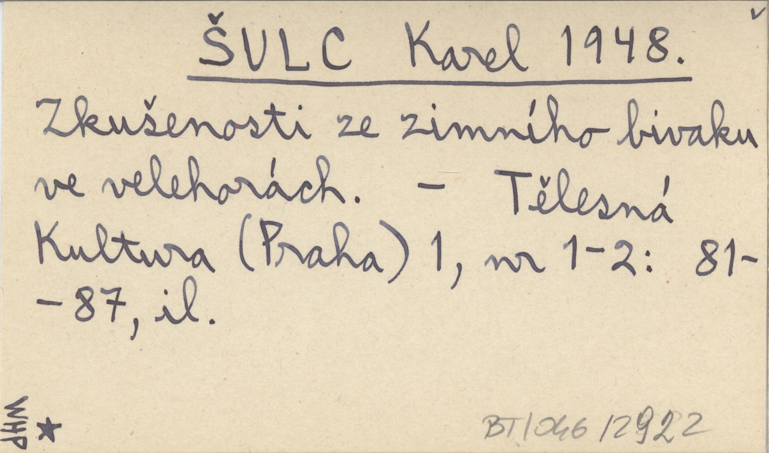 ŠULC Karel 1948 Zkušenosti ze zimního bivaku ve velehorách.