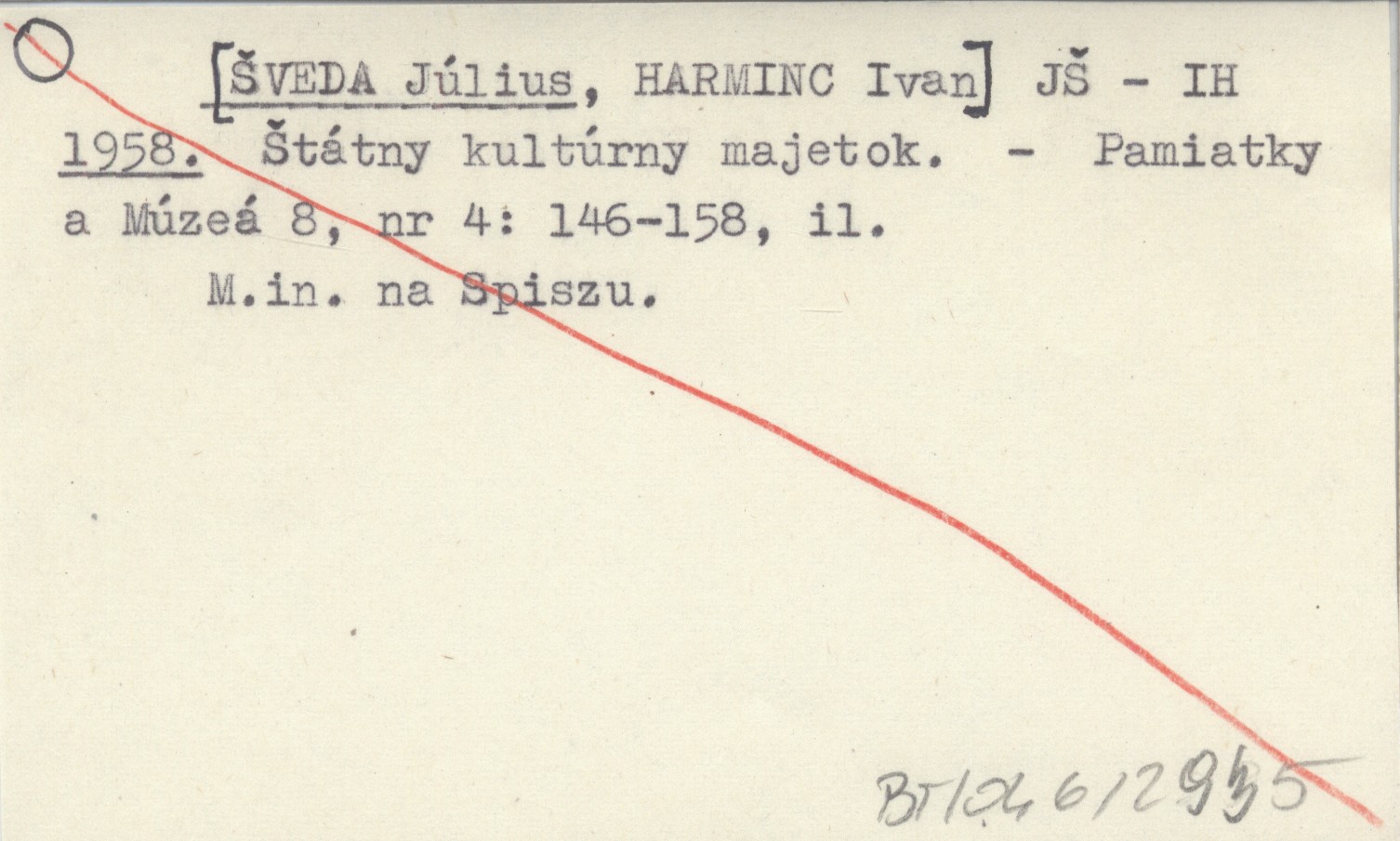 JŠ [ŠVEDA Július] HARMINC, Ivan. ; 1958 Štátny kultúrny majetok.