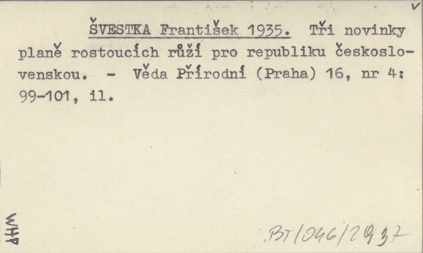 ŠVESTKA František 1935 Tři novinky planě rostoucích růží pro republiku československou.
