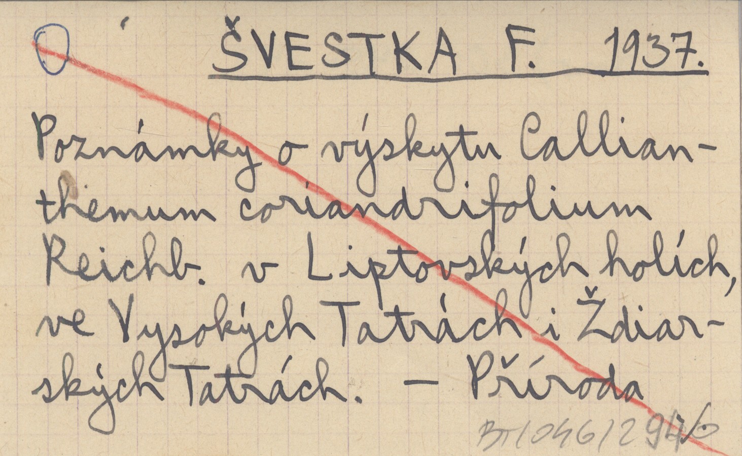 Poznámky o výskytu Callianthemum coriandrifolium Reichb. v Liptovských holích, ve Vysokých Tatrách i ®diarských Tatrách.