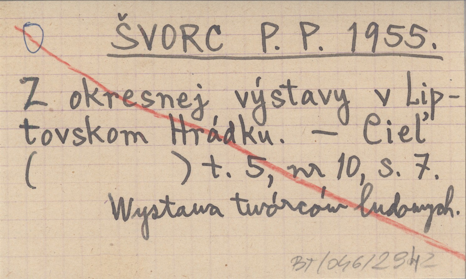 ŠVORC P. P. 1955 Z okresnej výstavy v Liptovskom Hrádku.
