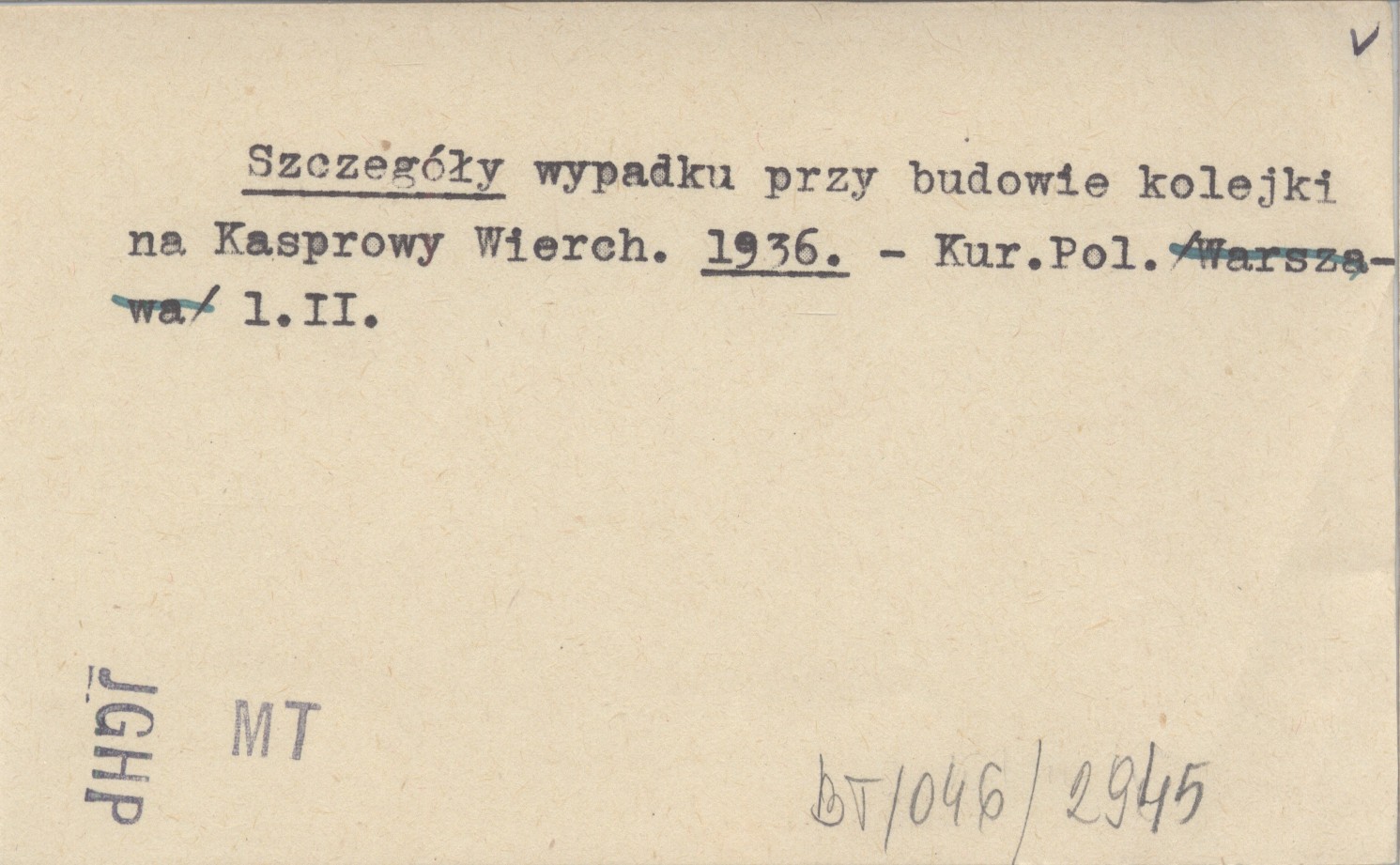 Szczegóły wypadku przy budowie kolejki na Kasprowy Wierch. 1936