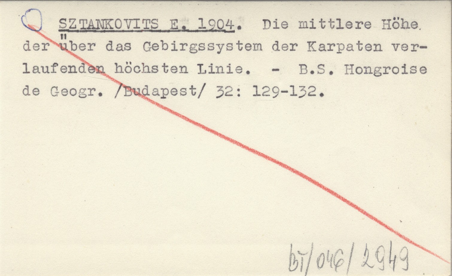 SZTANKOVITS E. 1904 Die mittlere Höhe der über das Gebirgssystem der Karpaten verlaufenden höchsten Linie.
