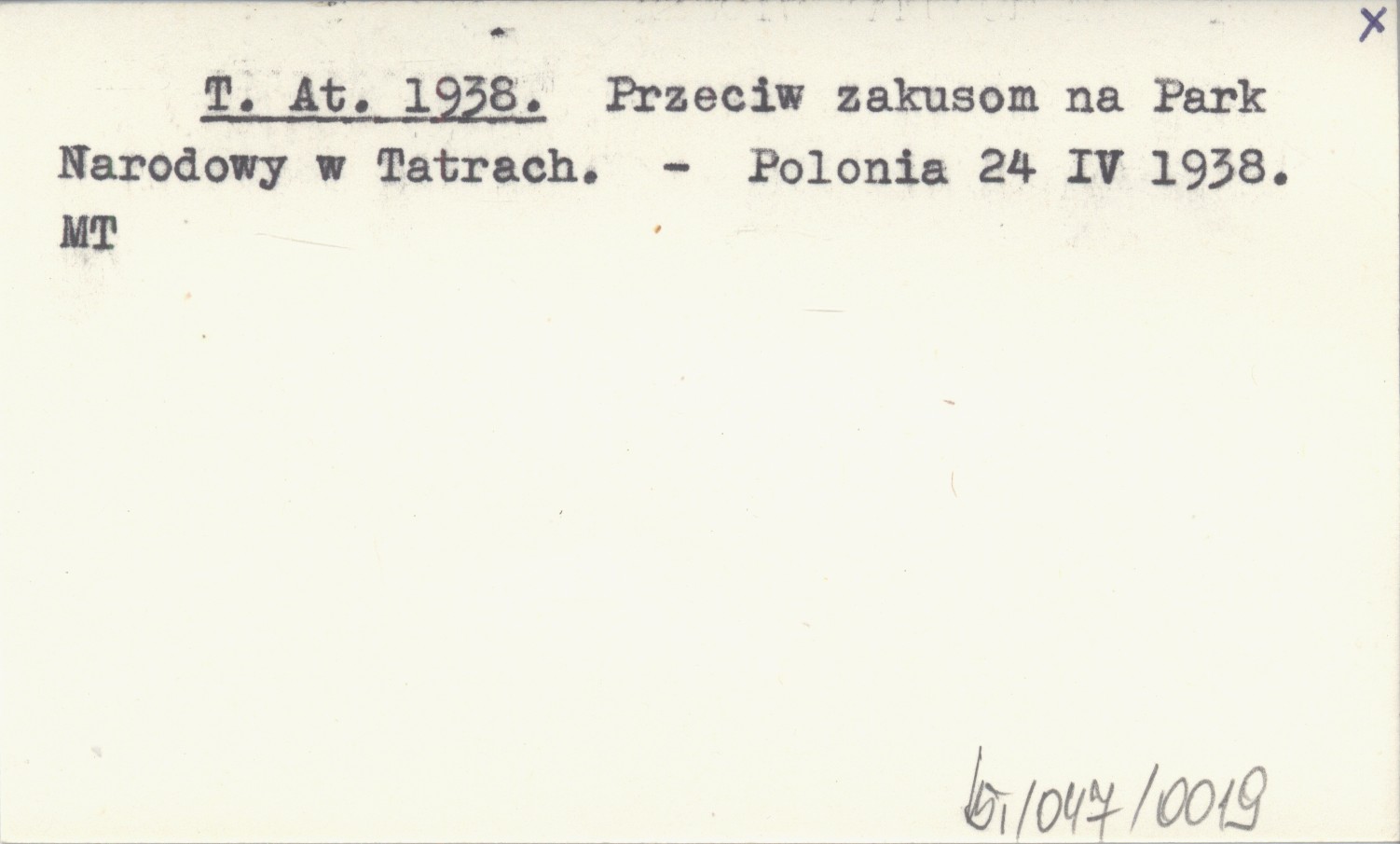 T. At. 1938 Przeciw zakusom na Park Narodowy w Tatrach.