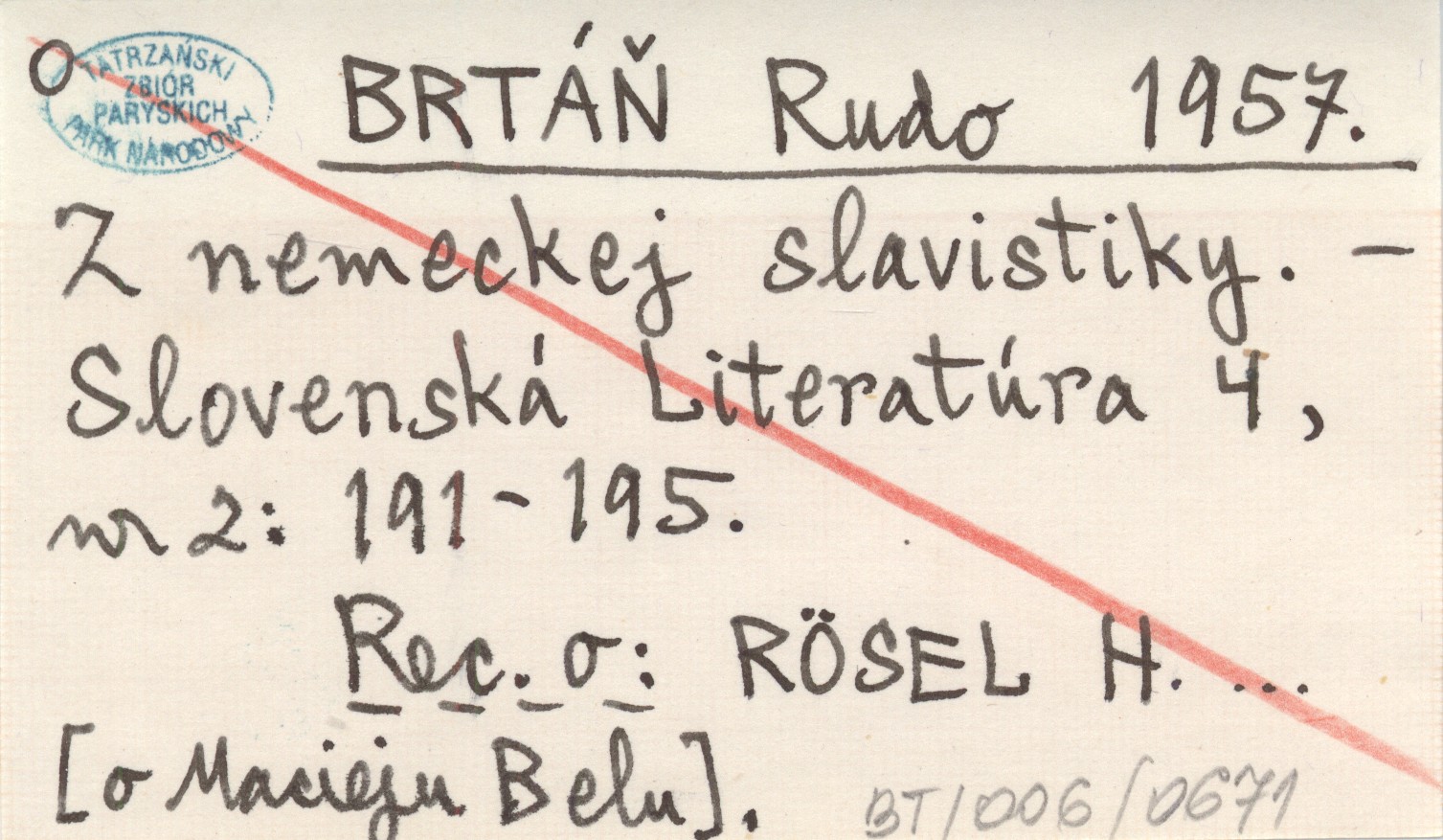 Slovenská Literatúra, 4, nr 2: 191-195. REC: RÖSEL H. ... [o Macieju Belu].