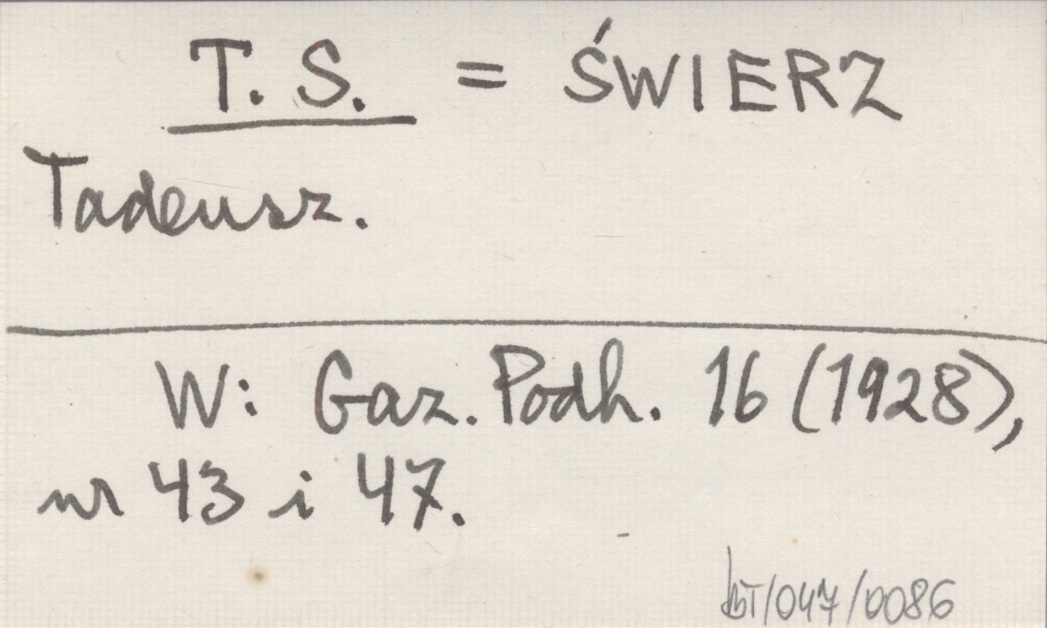 T. S. ŚWIERZ Tadeusz Gazeta Podhalańska 16 (1928), nr 43, 47.