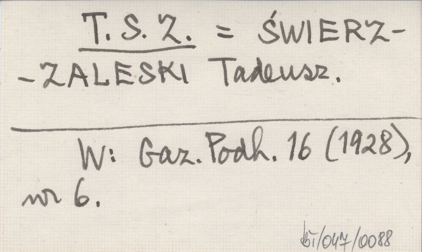 T. S. Z. ŚWIERZ-ZALESKI Tadeusz Gazeta Podhalańska 16 (1928), nr 6.