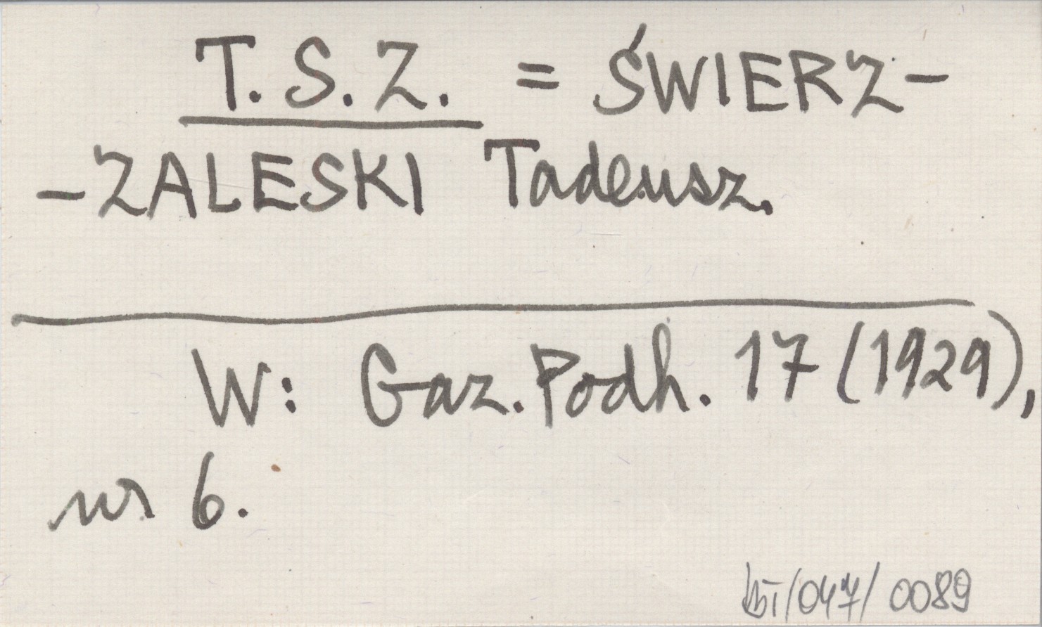 T. S. Z. ŚWIERZ-ZALESKI Tadeusz Gazeta Podhalańska 17 (1929), nr 6.