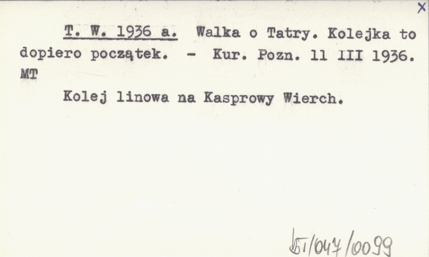 T. W. 1936 a Walka o Tatry. Kolejka to dopiero początek.