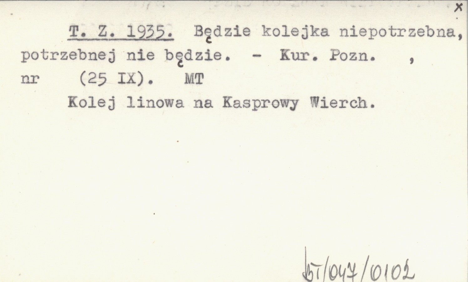 T. Z. 1935 Będzie kolejka niepotrzebna, potrzebnej nie będzie.