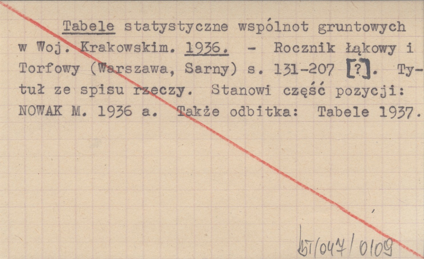 Rocznik Łąkowy i Torfowy (Warszawa ; Sarny ;) , S. 131-207. Tytuł ze spisu rzeczy. Stanowi część pozycji: NOWAK M. 1936 a. Także odbitka; Tabele 1937.