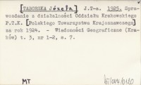 J. T-a. [TABORSKA Józefa] 1925 Sprawozdanie z działalności Oddziału Krakowskiego P.T.K. [Polskiego Towarzystwa Krajoznawczego] za rok 1924.