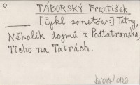 TÁBORSKÝ František [Cykl sonetów:] Tatry, Několik dojmů z Podtatranska, Ticho na Tatrách.
