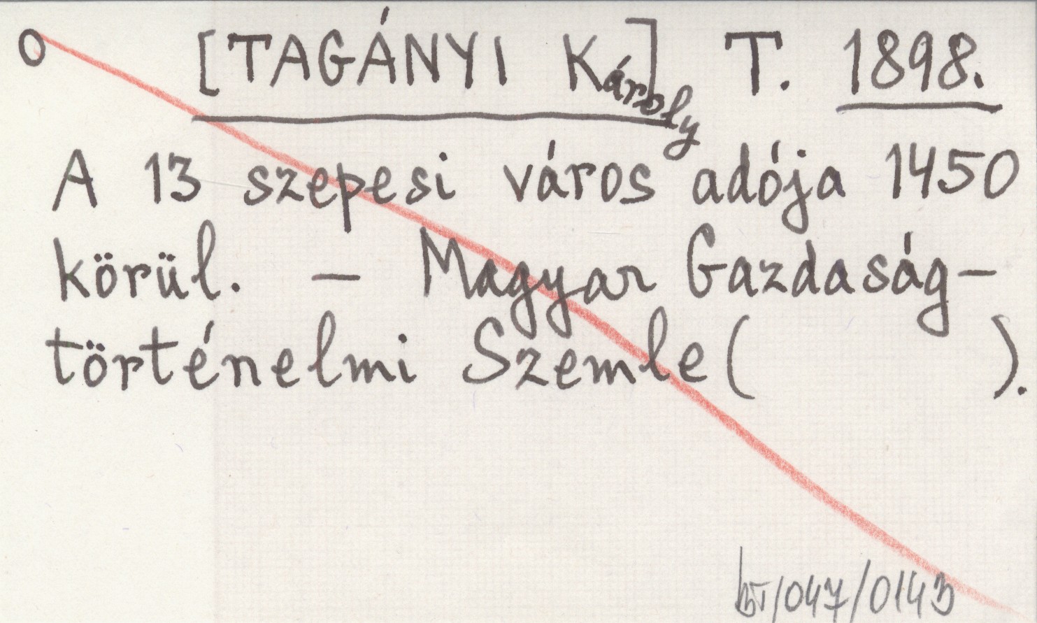 T. [TAGÁNYI Károly] 1898 A 13 szepesi város adója 1450 körül.
