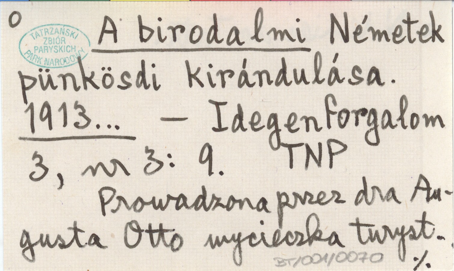 Idegenforgalom, 3, nr 3: 9. Prowadzona przez dra Augusta Otto wycieczka turystyczna z Niemiec do Tatr.