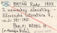 BRTÁŇ Rudo 1957 Z nemeckej slavistiky.