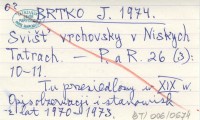 BRTKO J. 1974 Svią» vrchovsky v Niskych Tatrach.