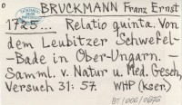 BRUCKMANN Franz Ernst 1725... Relatio quinta. Von dem Leubitzer Schwefel-Bade in Ober-Ungarn.