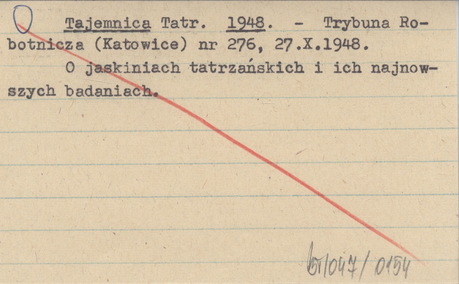Trybuna Robotnicza (Katowice) , Nr 276 (27 X 1948). O jaskiniach tatrzańskich i ich najnowszych badaniach.