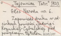 Projekt Digitalizacja fiszek z Bibliografią Tatr i Podtatrza Witolda Henryka Paryskiego jest finansowany ze środków Ministra Kultury i Dziedzictwa Narodowego oraz Tatrzańskiego Parku Narodowego.