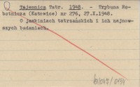 Tajemnice pasma jaskiń ciągnących się pod Tatrami. 1948
