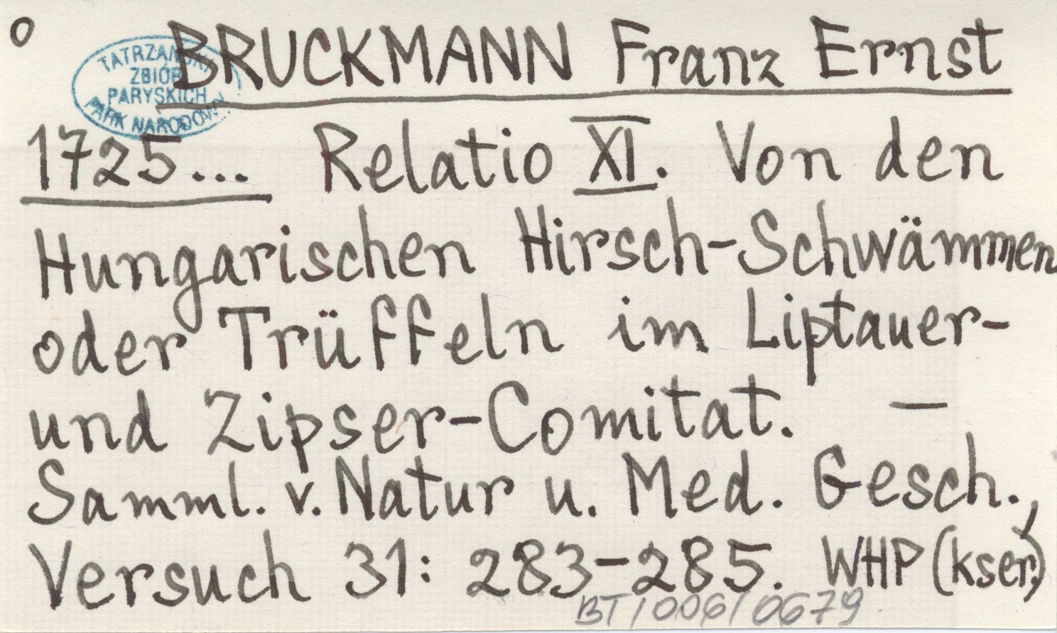 BRUCKMANN Franz Ernst 1725... Relatio XI. Von den Hungarischen Hirsch-Schwämmen oder Trüffeln im Liptauer- und Zipser-Comitat.