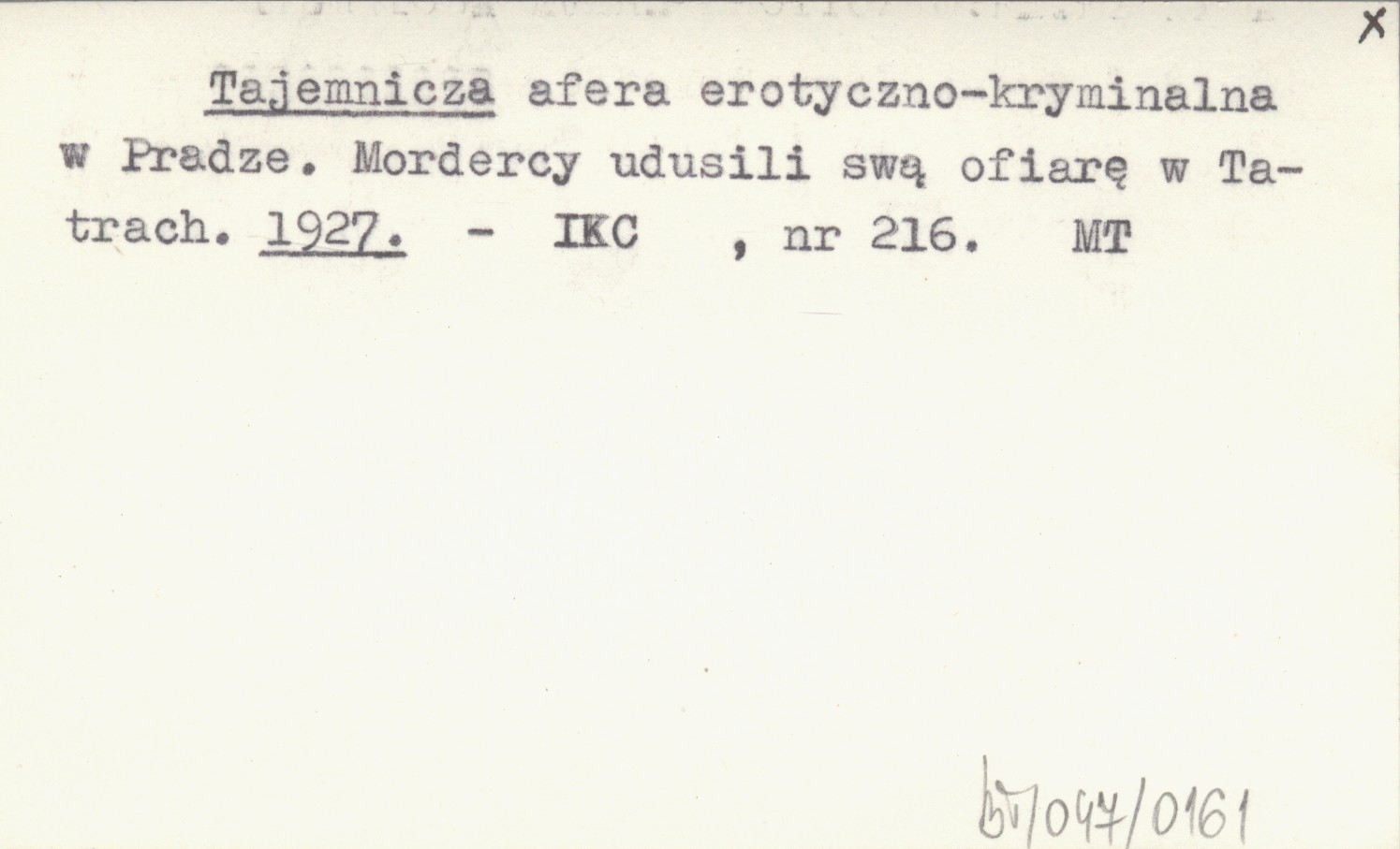 Tajemnicza afera erotyczno-kryminalna w Pradze. Mordercy udusili swą ofiarę w Tatrach. 1927
