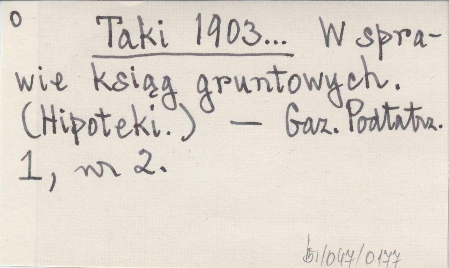 Taki 1903... W sprawie ksiąg gruntowych. (Hipoteki).