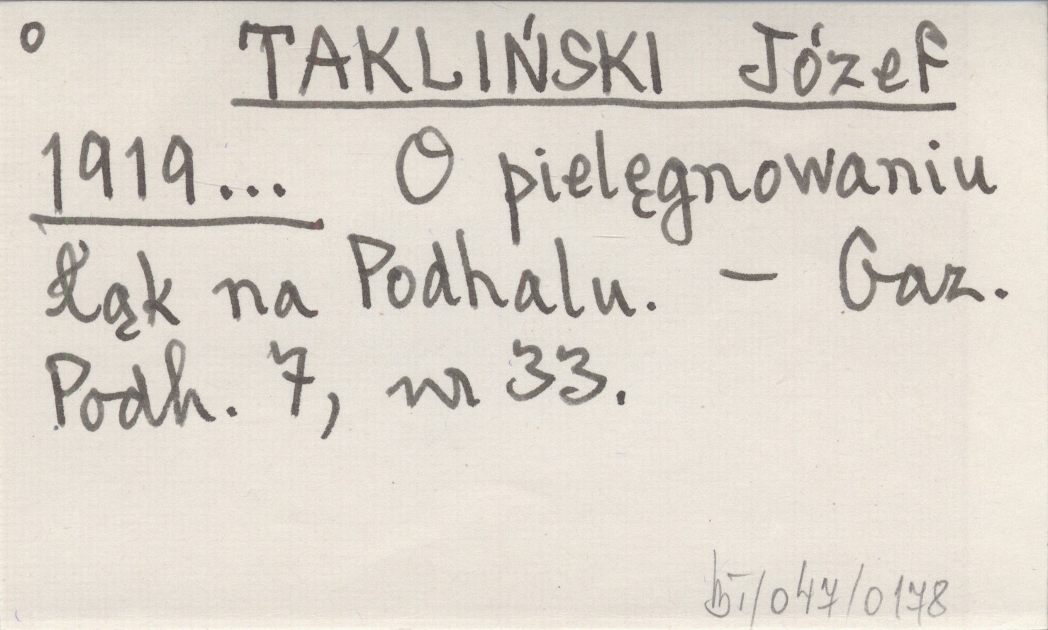 TAKLIŃSKI Józef 1919... O pielęgnowaniu łąk na Podhalu.