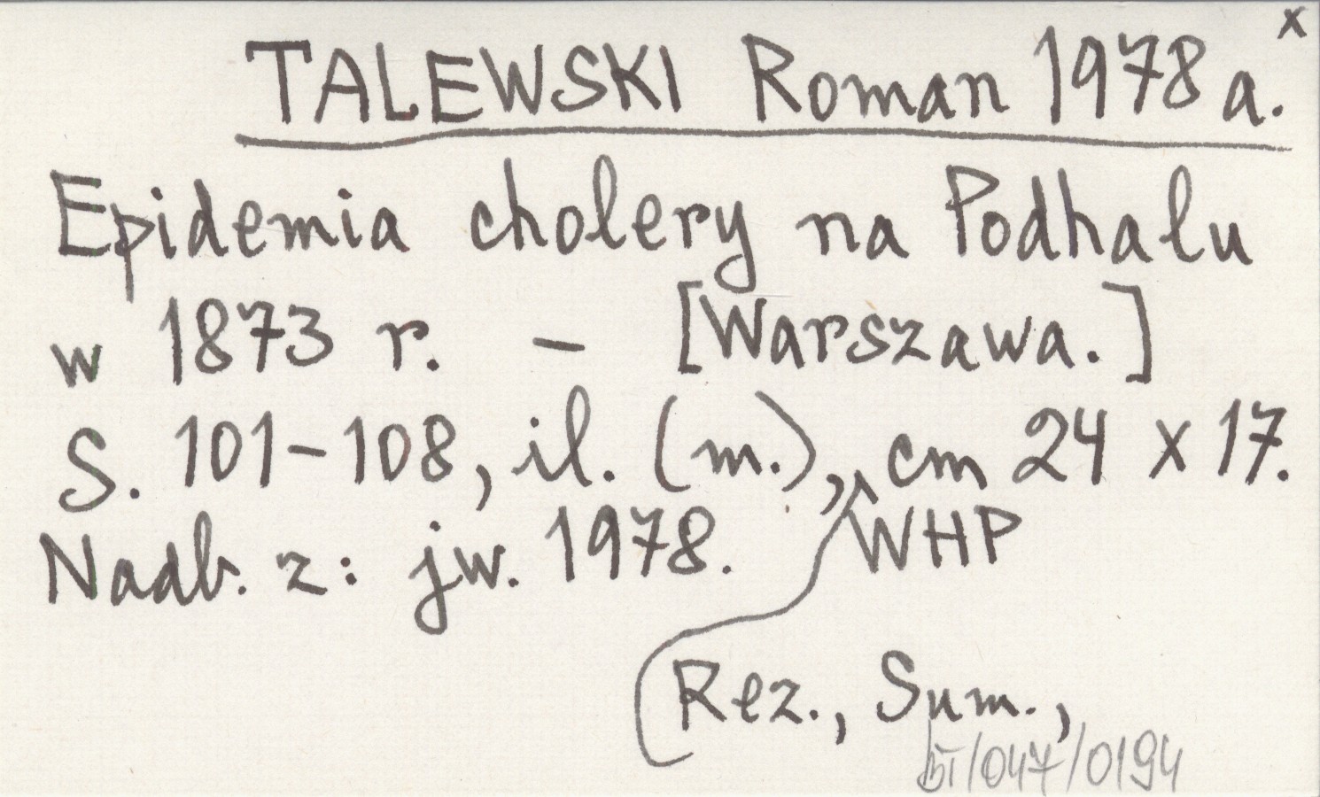 TALEWSKI Roman 1978 a Epidemia cholery na Podhalu w 1873 r.
