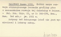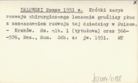 TALEWSKI Roman 1951 Krótki zarys rozwoju chirurgicznego leczenia gruźlicy płuc z zaznaczeniem rozwoju tej dziedziny w Polsce.