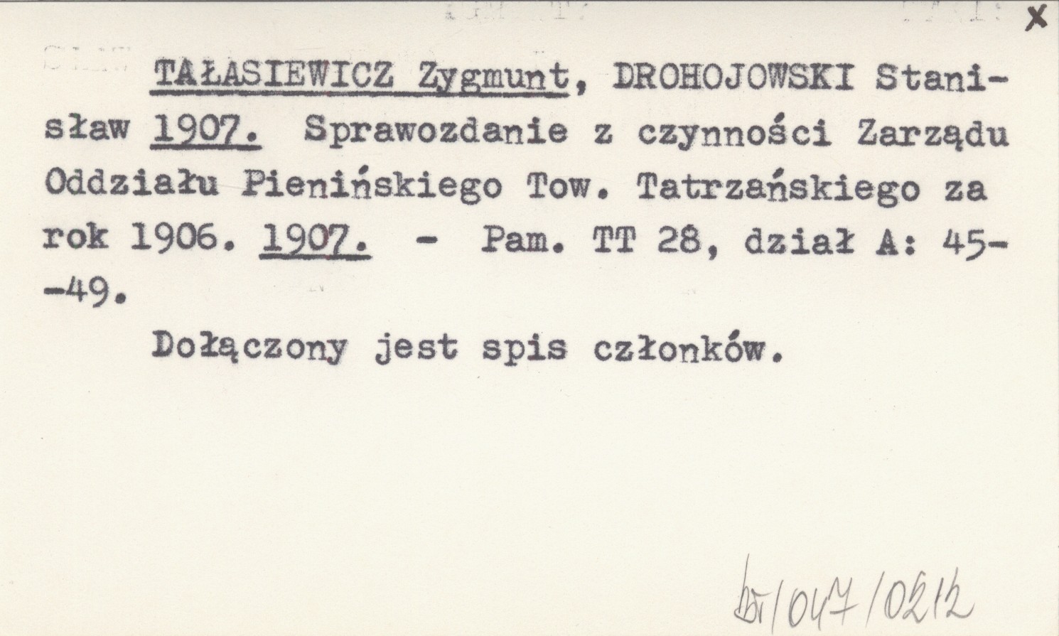 Pamiętnik Towarzystwa Tatrzańskiego, 28, dział A: 45-49. Dołączony jest spis członków.