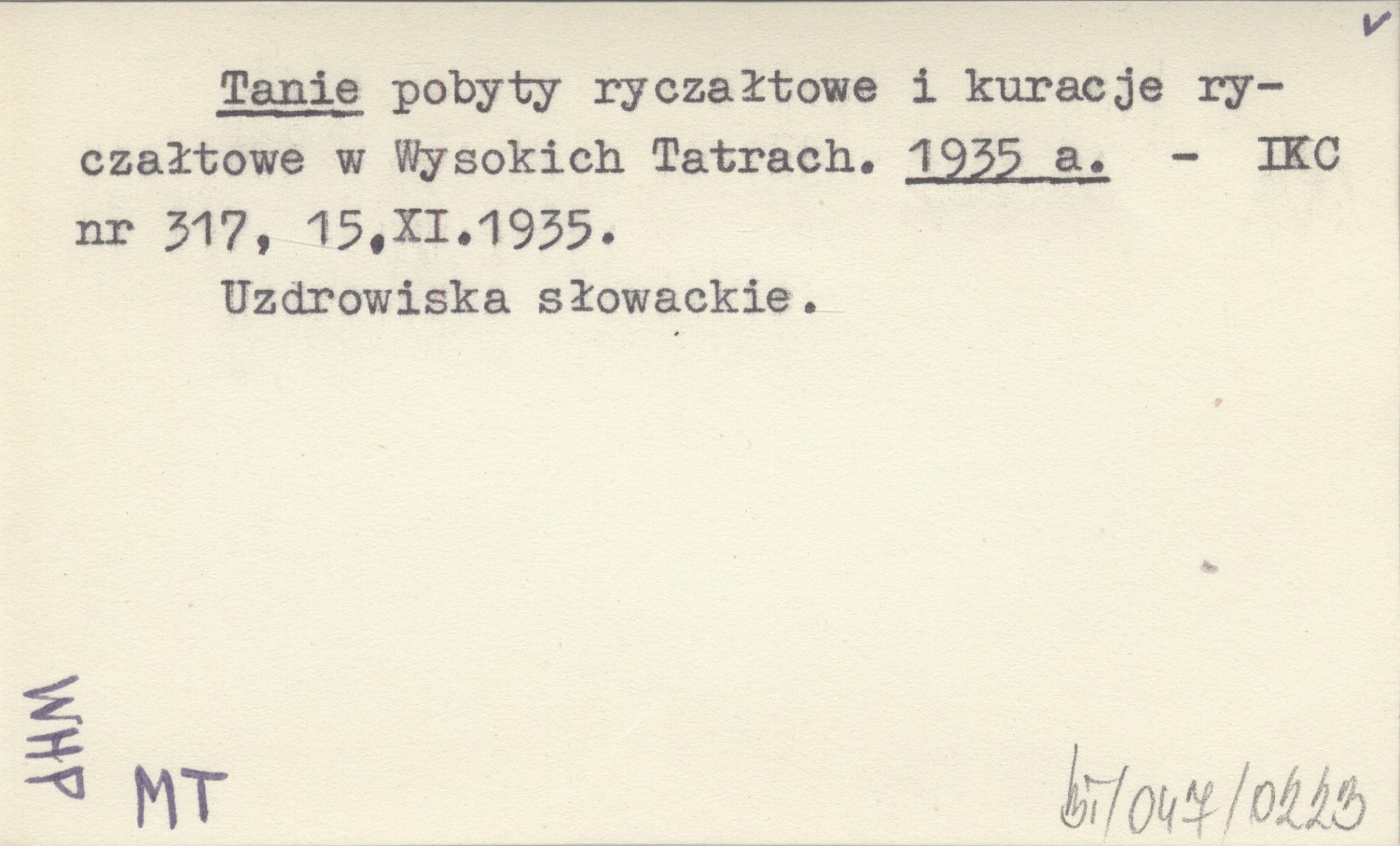 Tanie pobyty ryczałtowe i kuracje ryczałtowe w Wysokich Tatrach. 1935 a