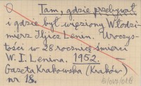 Tam, gdzie przebywał i gdzie był więziony Włodzimierz Iljicz Lenin. Uroczystości w 28 rocznicę śmierci W. I. Lenina. 1952