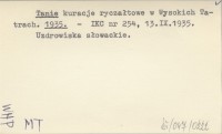 Tanie pobyty ryczałtowe i kuracje ryczałtowe w Wysokich Tatrach. 1935 a