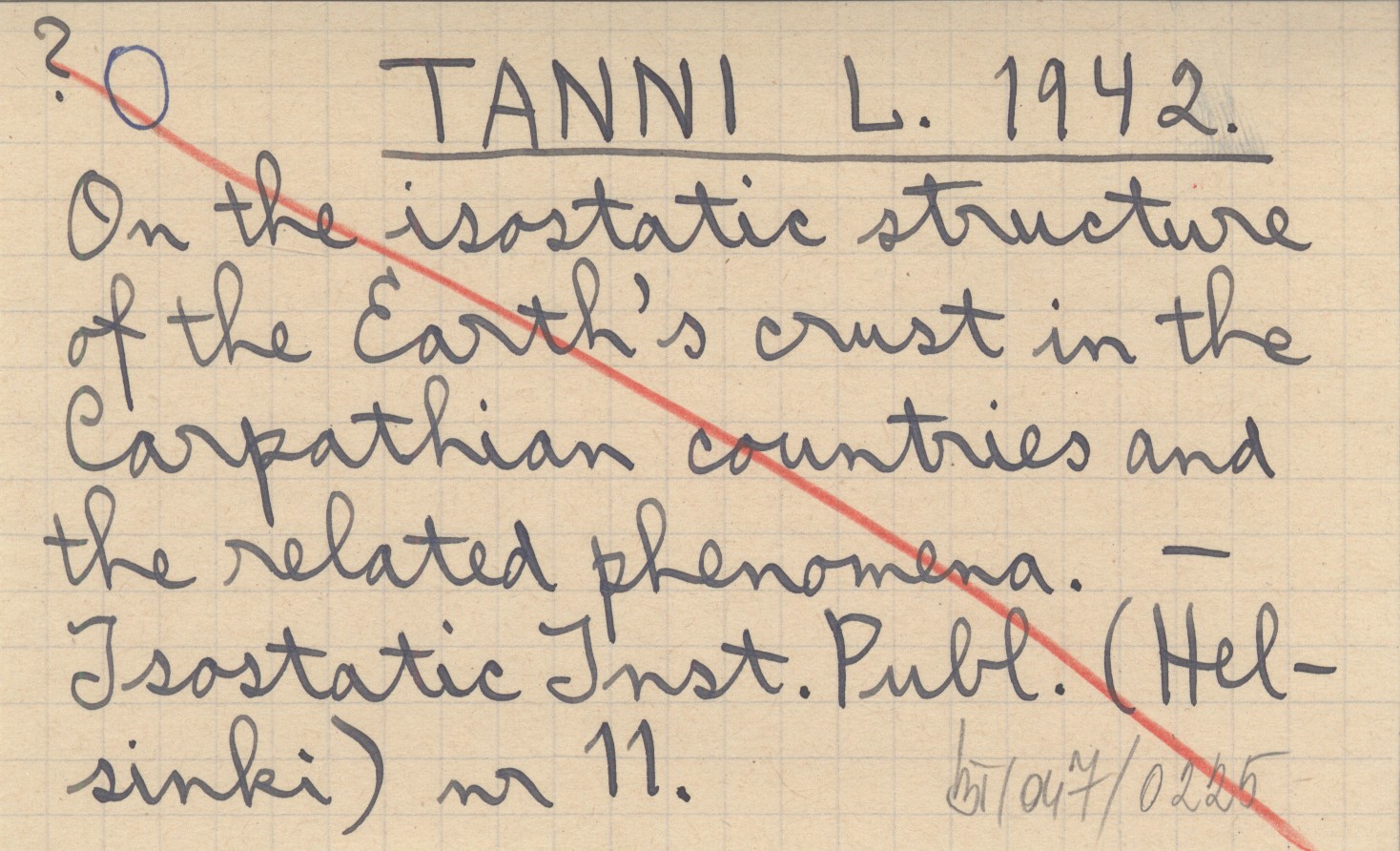 TANNI L. 1942 On the isostatic structure of the Earth's crust in the Carpathian countries and the related phenomena.