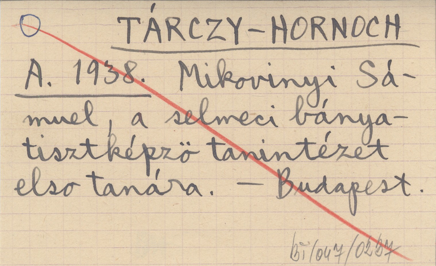 TÁRCZY-HORNOCH A. 1938 Mikovinyi Sámuel, a selmeci bányatisztképzö tanintézet elso tanára.