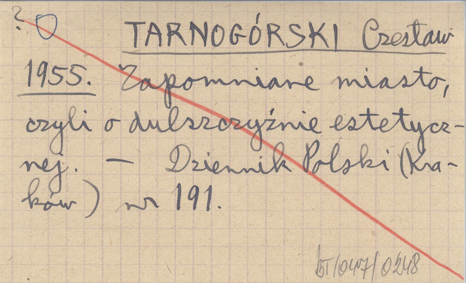 TARNOGÓRSKI Czesław 1955 Zapomniane miasto, czyli o dulszczyźnie estetycznej.