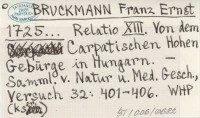 BRUCKMANN Franz Ernst 1725... Relatio XIII. Von dem Carpatischen Hohen Gebürge in Hungarn.