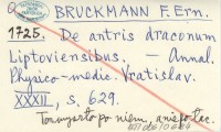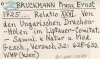 BRUCKMANN F. Ern. 1725 De antris draconum Liptoviensibus.