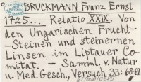 BRUCKMANN Franz Ernst 1725... Relatio XXIX. Von den Ungarischen Frucht-Steinen und steinernen Lisnen im Liptauer Comitat.